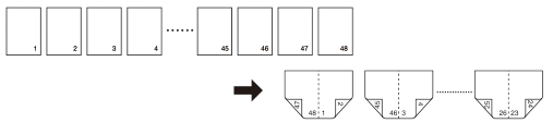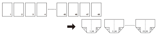 Use this function to make a multiple page signature booklet printed on 2-sided paper, with original images automatically arranged in correct order.
