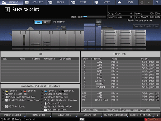 On the touch panel of the main body, you can temporarily hold the copy data scanned with the ADF or original glass on the HDD of this machine as a "copy job" or save it on the HDD.