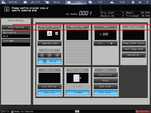 • supplementary explanationFor details about the scan setting, refer to [STORE] Screen.