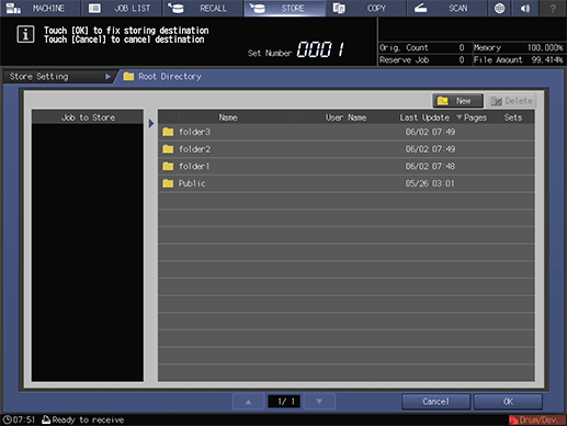 The Root Directory screen is displayed. Specify the storage location, then press OK.