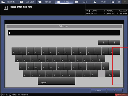 • supplementary explanationIt is possible to skip entering a file name. If you do not specify a file name, a 4-digit number (serially from 0001) is assigned automatically.