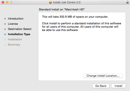 • supplementary explanationIf the installer does not start, double-click JobCentro2.0.pkg on the CD-ROM.