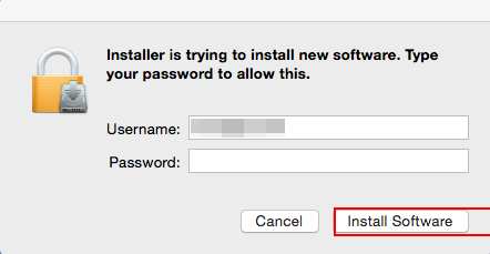 7. If you are prompted to enter the password, enter the password, and then click Install Software.
