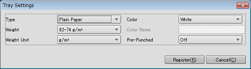 For the PI tray, Color, Color Name, and Pre-Punched are not available.