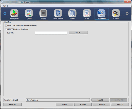 To search for the external file of VDP resource data, select the PDF/VT-2 External Files Search check box, click Look in, then specify the folder.