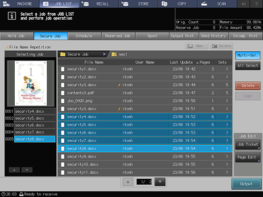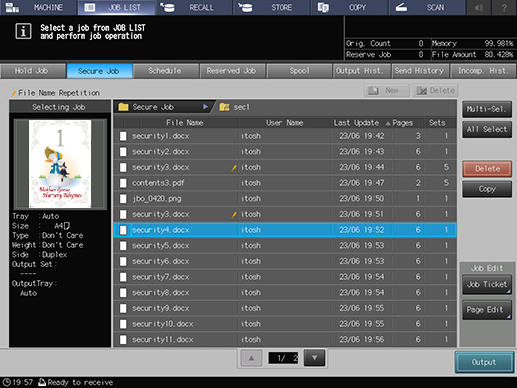 1. Press the JOB LIST tab to display the JOB LIST screen.