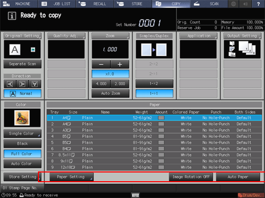 The screen returns to the COPY screen. The message Press [Start] to scan originals is displayed in the message area.