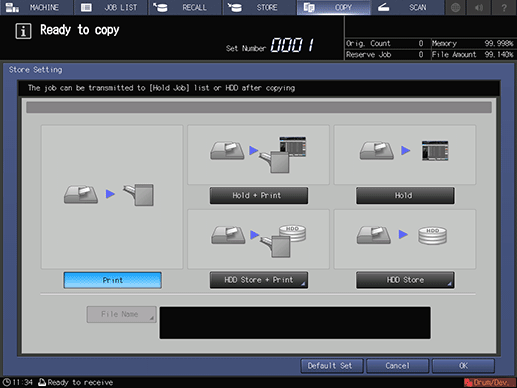 Press File Name on the Store Setting screen to display the File Name dialog box, enter the file name, then press OK.