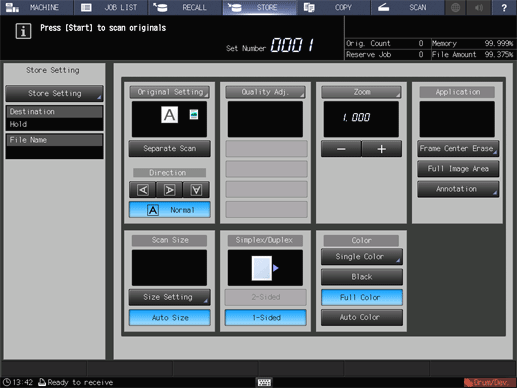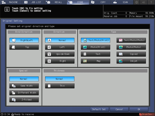 You can set separate scan, bind direction of two-sided original (whether the top and bottom of both sides are the same, or one side is flipped vertically), original orientation, and original type.