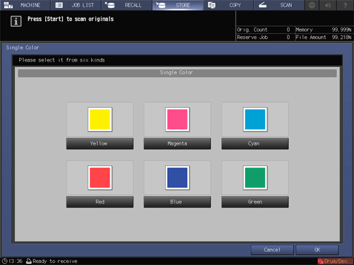 Copy in a single color selected from 6 colors which are Yellow, Magenta, Cyan, Red, Blue, and Green.