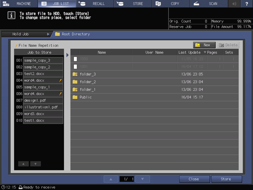• supplementary explanationYou can also create a new folder or user box to save the job. For details about how to create a folder and user box, refer to Folder and User Box.