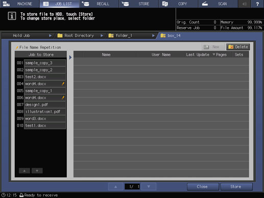 3. Select the job to be stored on the HDD.