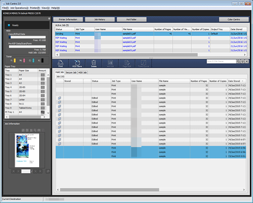 If a job not to be stored is moved from the Active Job list to the Hold Job list, it cannot be edited using Job Centro or Web Connection.