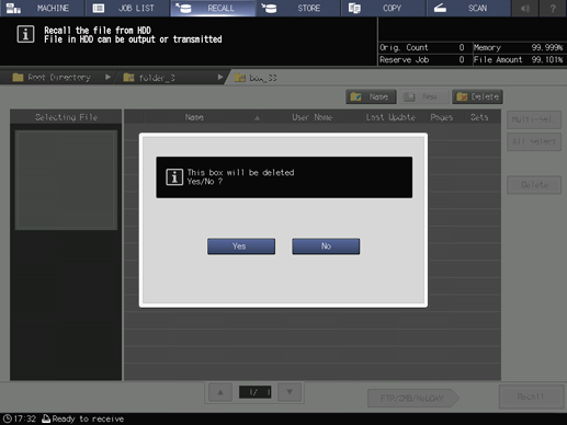 supplementary explanationYou cannot delete a user box if it contains a job.