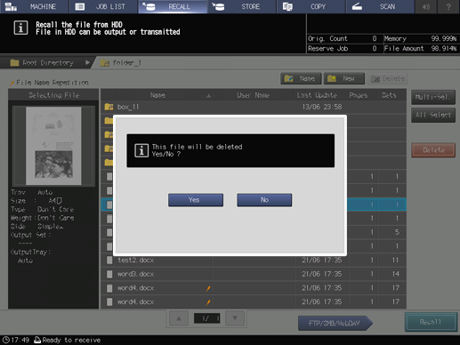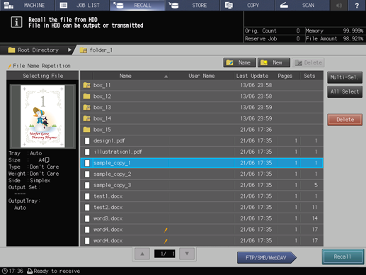 supplementary explanationSelect the directory (root directory, folder, user box) of the HDD where the job is stored. If the folder or user box is password-protected, enter the password.
