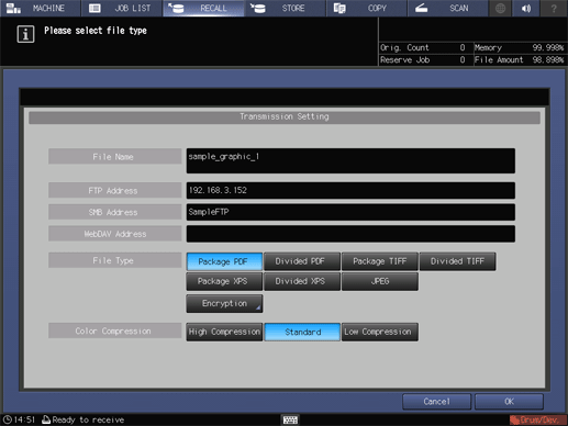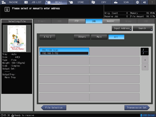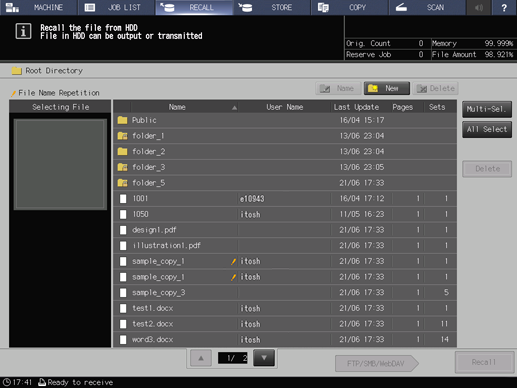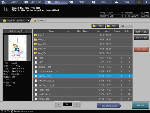 • supplementary explanationSelect the directory (root directory, folder, user box) of the HDD where the job is stored. If the folder or user box is password-protected, enter the password.