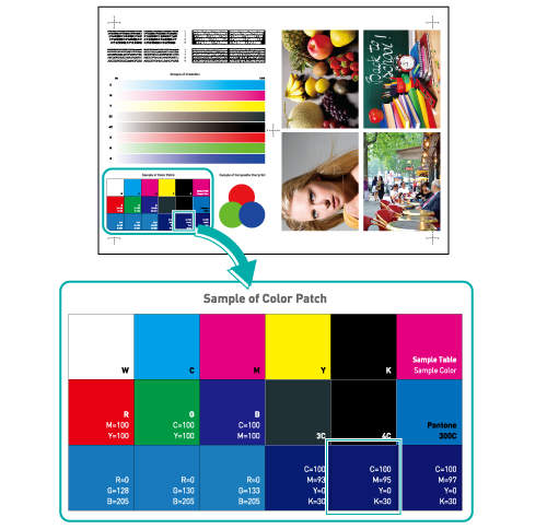 This section introduces how to register the following alternative color for the original CMYK color and how to print upon replacing the color.