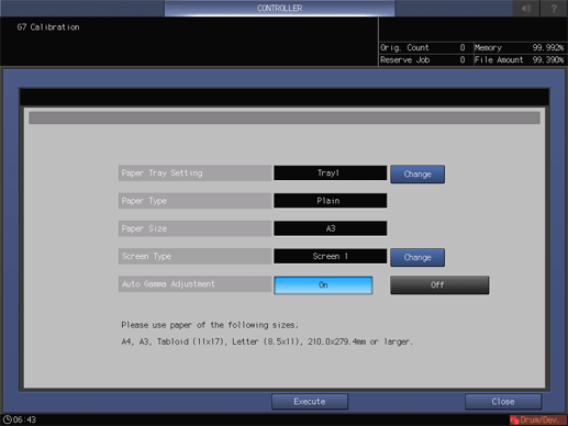 To appropriately print a chart, select a tray that has an appropriate size of paper.
