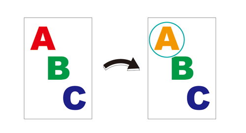 The specified original colors are all replaced by their corresponding predefined alternative colors. Check that the texts, graphics, or images that you want to print in their original colors do not include the colors specified to be replaced by alternative colors. Particularly in the case of RGB colors, use caution to prevent unexpected replacement of colors in images.