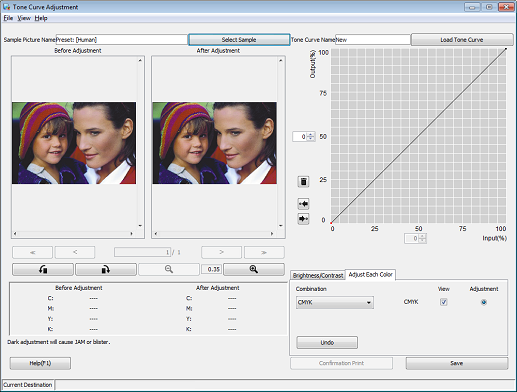 6. Click Adjust Each Color, and then select C/M/Y/K for Combination.