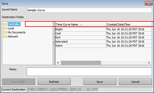 9. Enter the name of the adjusted tone curve. Select Controller as the Destination Folder and click Save.