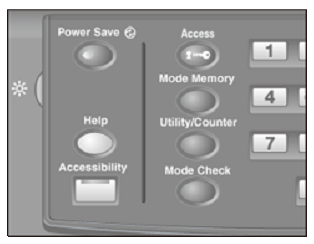 If the machine is idle for a certain period of time while being able to output, the Power Save LED lights and the touch panel turns off lowering the power consumption of the machine. The Start LED turns orange, while the Power LED keeps blue.