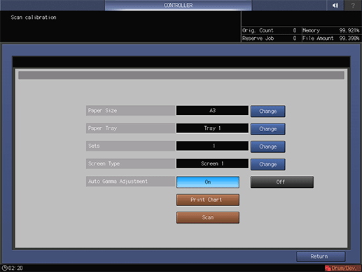 This screen is displayed if you select Scan calibration in the Controller Machine Setting Menu screen. For details about how to display the Controller Machine Setting Menu screen, refer to Overview of Controller.
