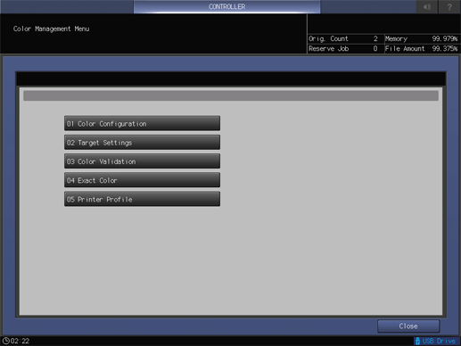 This screen is displayed if you select Color management on the Controller Machine Setting Menu screen. For details about how to display the Controller Machine Setting Menu screen, refer to Overview of Controller.