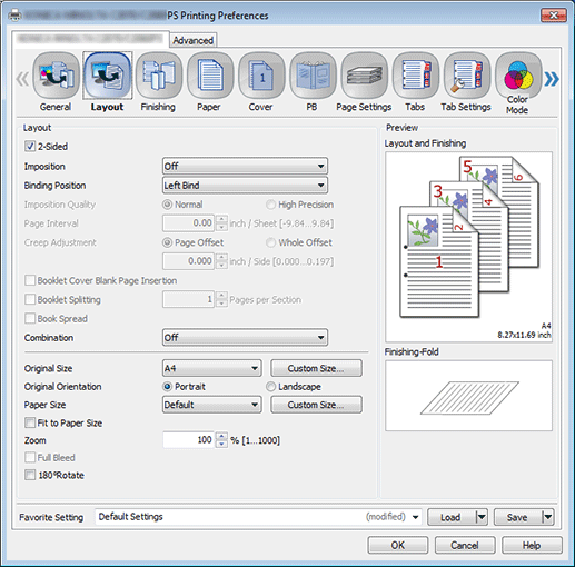 When setting in the printer driver, make sure that there are no previous settings left in each item in the tabs Layout, Finishing, Cover, etc.