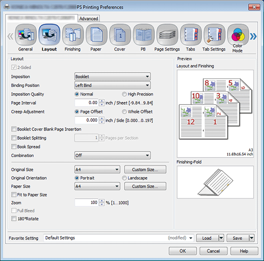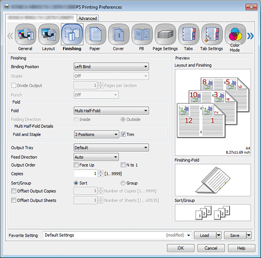 Click the Finishing tab, and then set Fold and Multi Half-Fold Details.