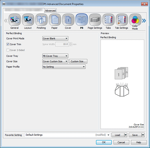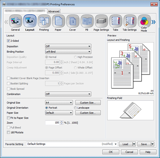 When setting in the printer driver, make sure that there are no previous settings left in each item in the tabs Layout, Finishing, Cover, etc.