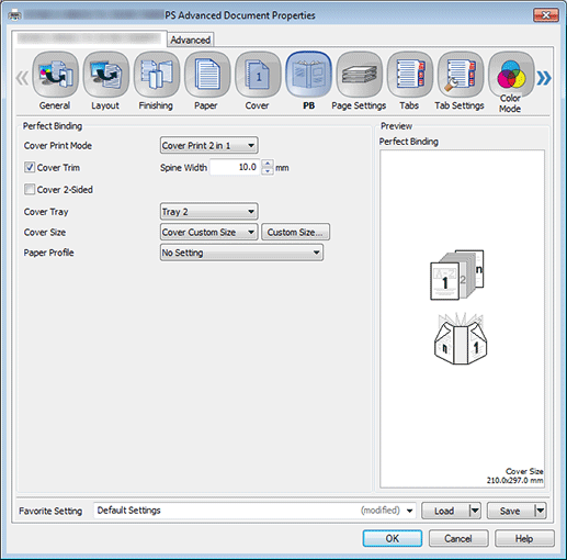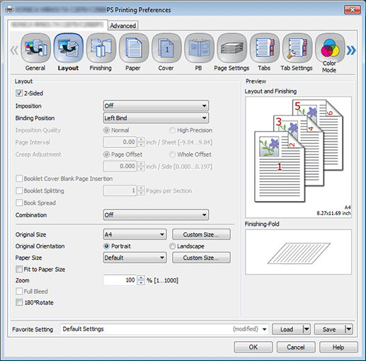 When setting in the printer driver, make sure that there are no previous settings left in each item in the tabs Layout, Finishing, Cover, etc.
