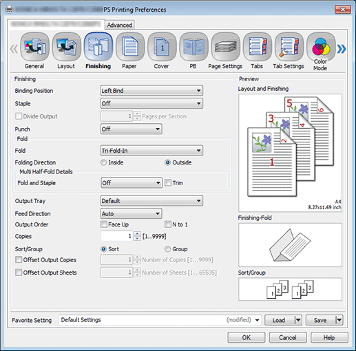 Click the Finishing tab, and then set Fold and Folding Direction.
