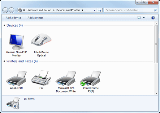 19. After finishing the installation, make sure that the icon for the installed printer is displayed in the Devices and Printers or Printers window.