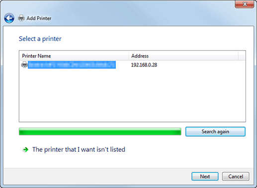 • supplementary explanationIt may take some time to finish searching the entire list of printers.