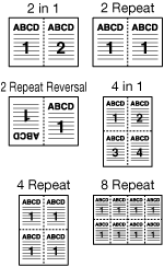 Imposition | Off, Adhesive Binding, Booklet, 2 in1 (Full Size), 4 in 1 (Full Size / Horizontal), 4 in 1 (Full Size / Vertical), 2 Repeat, 2 Repeat Reversal (Left), 2 Repeat Reversal (Right), 4 Repeat, 8 Repeat | Set this to perform an imposition printing.