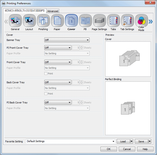 Paper Profile (Back cover sheet) | No Setting, Registered paper profile | Select predefined paper profile. You can add a new paper profile to the list from the touch panel on the machine. |