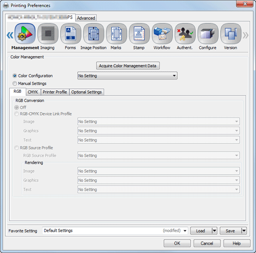 Acquire Color Management Data | - | Click this to obtain information on color configuration, profile, tone curve, and default setting registered in the image controller. |