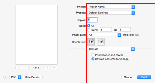 supplementary explanationPrinting Preferences of the printer driver changed in the Print window are not saved, and the original settings are restored when you exit the application.