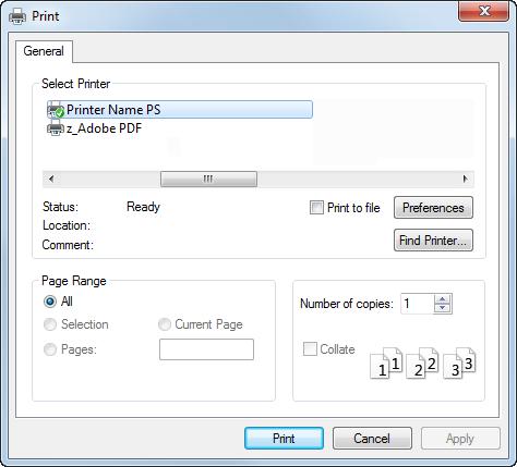 supplementary explanationClicking Properties or Preferences in the Print window displays the Printing Preferences page of the printer driver where you can configure various functions. For details, refer to [Print Setting] Screen.