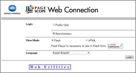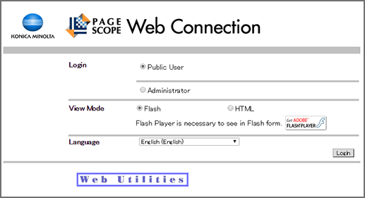 If user authentication is not enabled on the machine, you will be logging in as a public user. In the login screen, select Public User, and click Login.