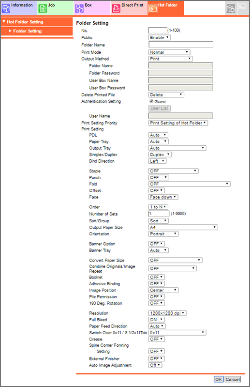 If you access a folder immediately after changing its folder settings, an OS error screen may be displayed. In that case, wait approximately 10 seconds before accessing it again.