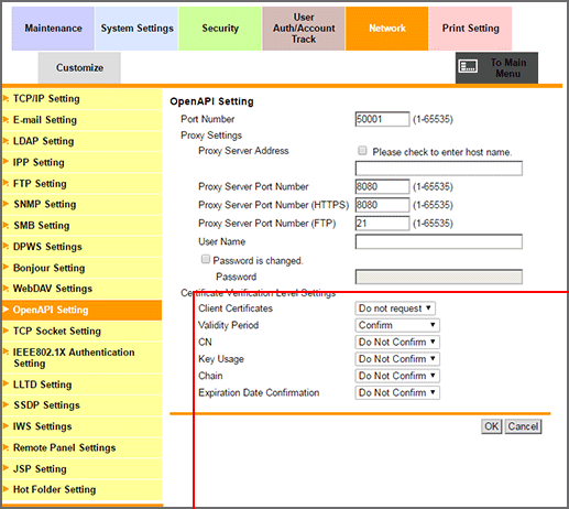 Click OpenAPI Setting on the menu of Network tab to display this screen.