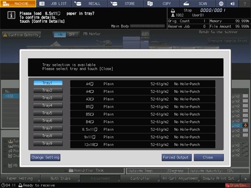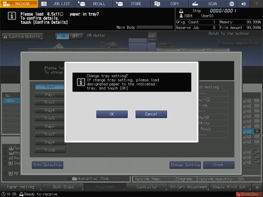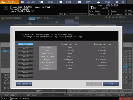 3. Load the tray selected in step 2 with paper of the conditions displayed as Reserved Setting.