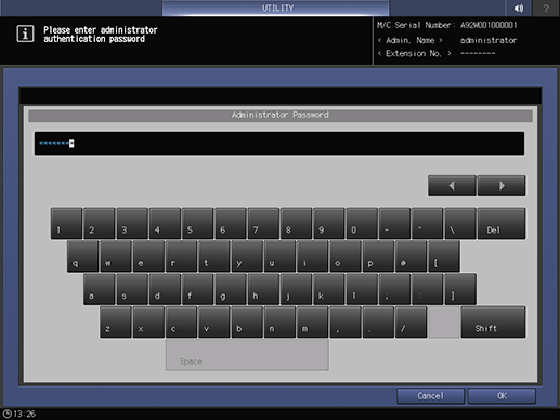If the Password Entry screen is displayed, enter the eight-letter administrator password, then press OK.