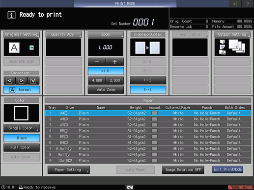5. Set A3 short edge feed paper or 11 17short edge feed paper into the tray to be adjusted, select that tray and then press Start on the control panel.