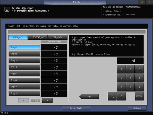 Objects of Adjustment: Tray1 to Tray9, 1st PFU Connecting Part, and 2nd PFU Connecting Part only