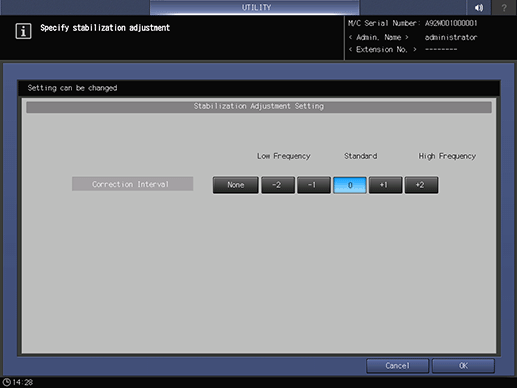 Press System Setting on the Administrator Setting Menu screen, and then press Expert Adjustment, Quality Adjustment, and Stabilization Adj. Setting in sequence.