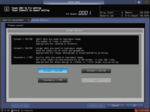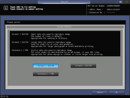 supplementary explanationIf necessary, you can press Screen Pattern to display the Screen Pattern screen and select any screen. Select a screen, and press OK.