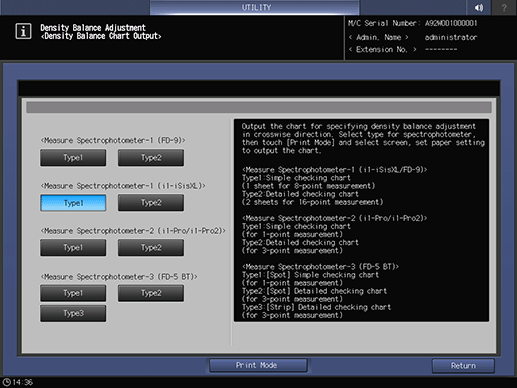 Density Balance Adjustment allows to create density balance adjustment data for correcting the non-uniformity of density in the crosswise direction.